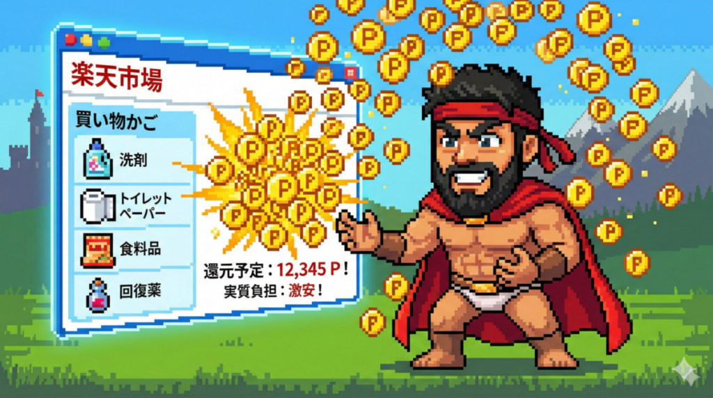 日用品や子どものオムツなどを楽天市場の「お買い物マラソン」などのイベント時にまとめ買いすれば、ポイントが信じられないくらいザクザク貯まります。そして、そのポイントをまた投資に回す…という完璧なループが完成するわけです。